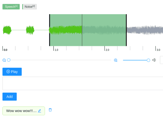 Use the Audio object tag to display a waveform of audio that can be labeled: