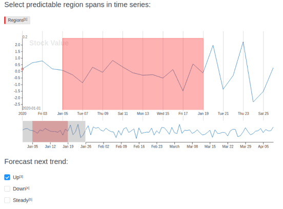 Use the TimeSeriesLabels control tag to highlight and label specific spans of a time series graph: